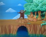 - El viaje del mapache 2 – Bosque. 65 x 54 cm. Óleo sobre lienzo. 125 €.