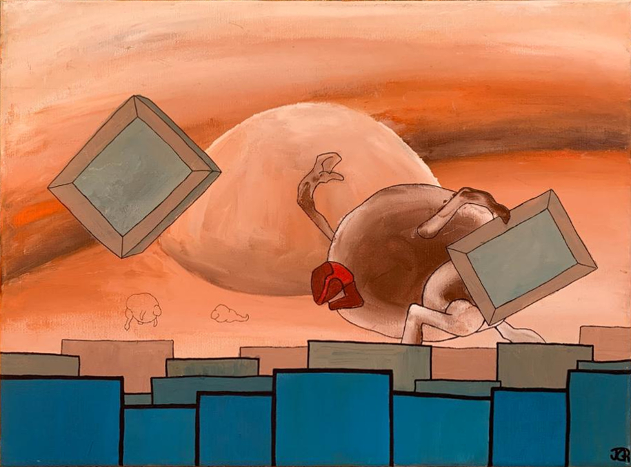 Personaje lanzando cuadros para mantener el orden